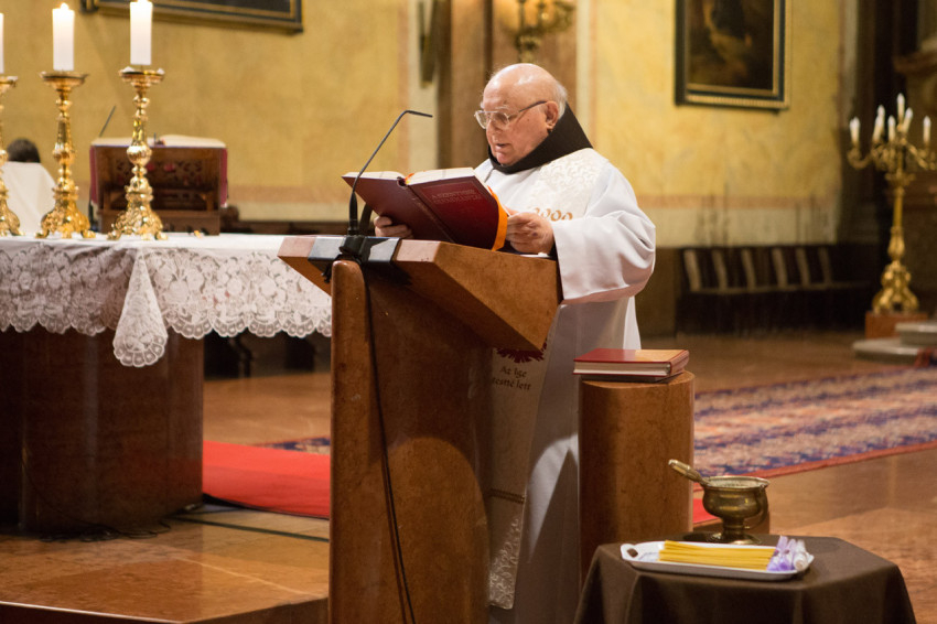 Mikorra a kápolnába értünk, már imába mélyedve, ragyogó, tiszta habitusban, minket mindig megelőzve ott térdelt Domonkos atya. Az imában éppoly serényen, mint a munkában.
