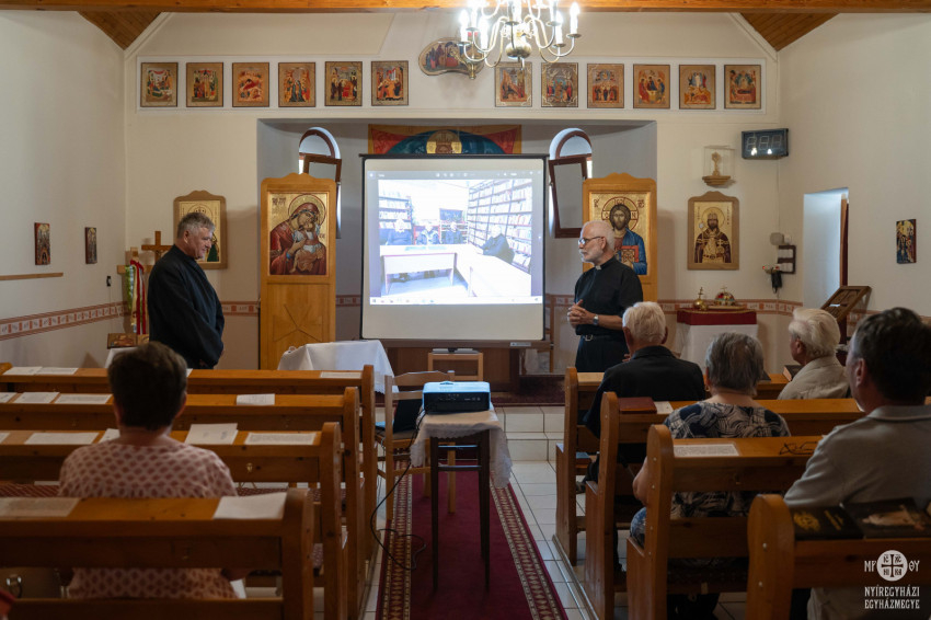 Csaba atya fotókon mutatta meg a büntetés-végrehajtási intézetben található kápolnát, ahol az ikonokat is a fogvatartottak festették az ő ösztönzésére. A szertartások, liturgiák célja nem az, hogy kipipáljuk és túllegyünk rajta, hanem hogy megváltoztassuk az embert: