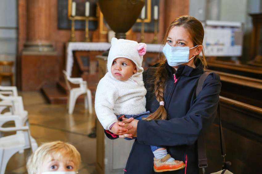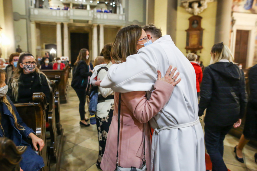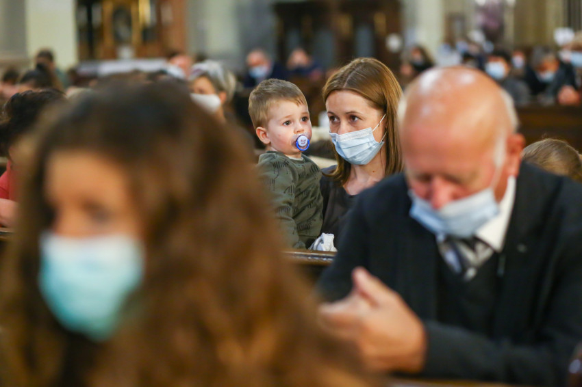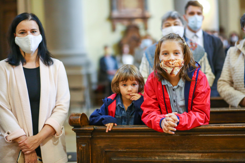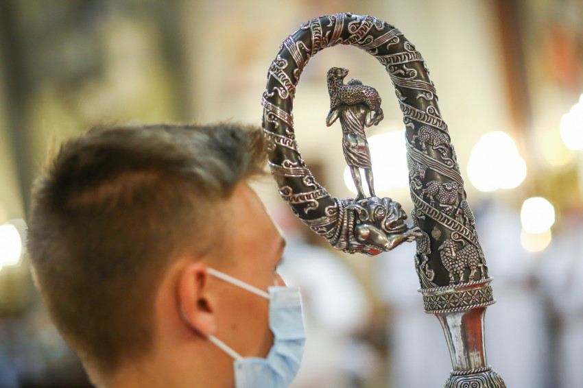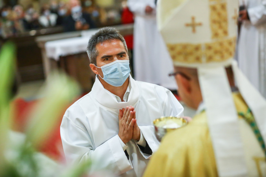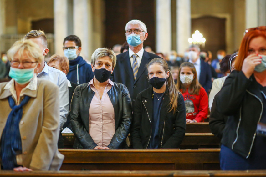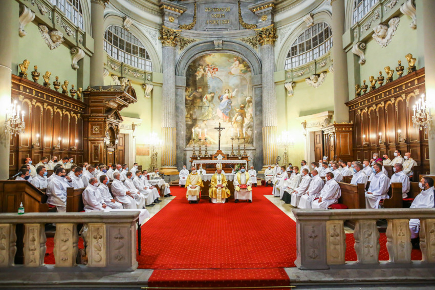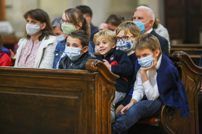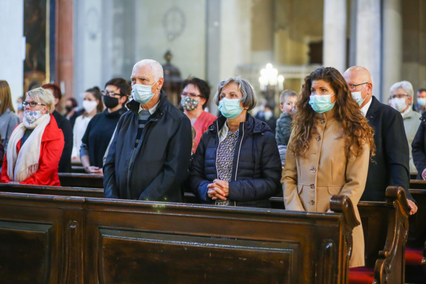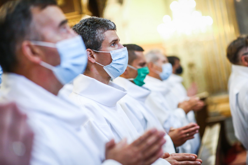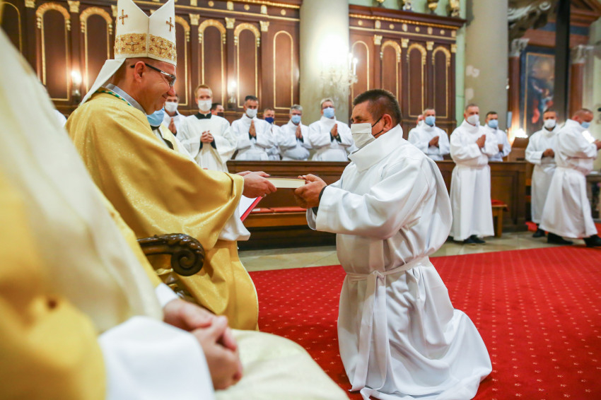 Megszólalt az orgona, felcsendült az ének, elkezdődött a szentmise. Marton Zsolt püspökkel hosszú sorban vonult be az asszisztencia. Felnőtt férfiak serege, diakónusok, lektorok, akolitusok, a negyven avatásra jelentkező, valamint paptestvérek. A szentmisén csak az avatás előtt állók közvetlen hozzátartozói vehettek részt, a járvány miatt ezúttal nem indíthattak buszokat a plébániák.