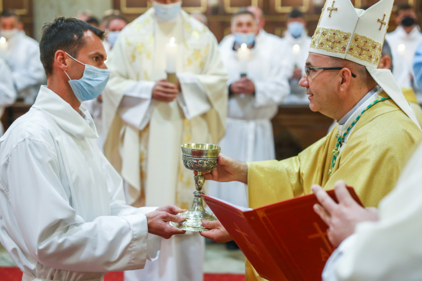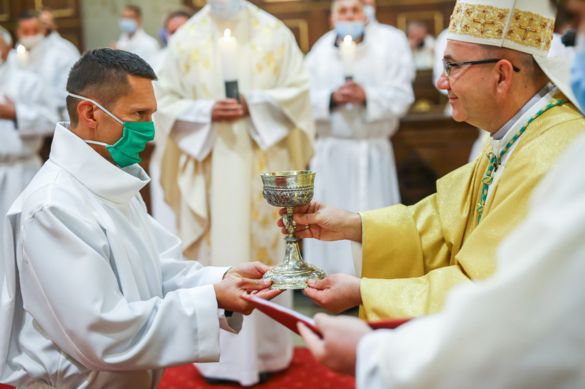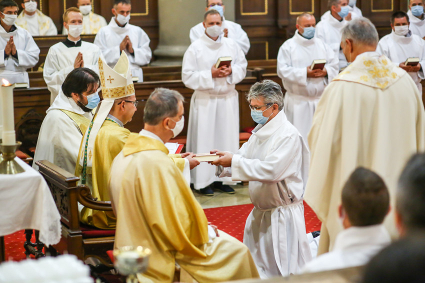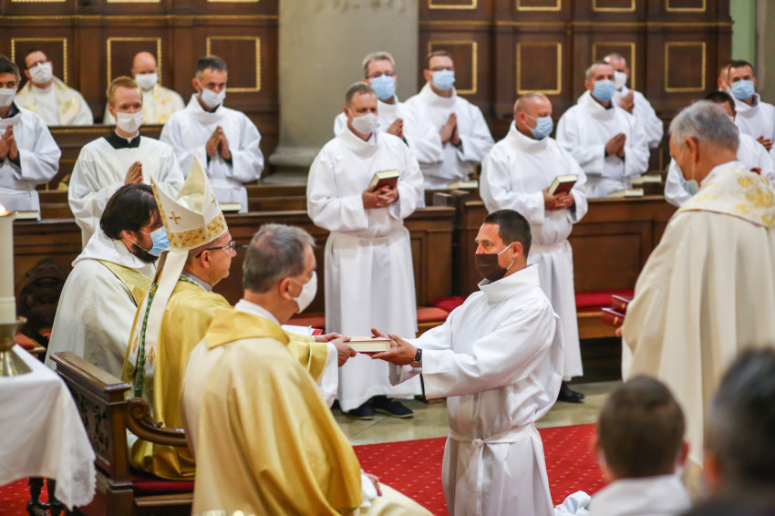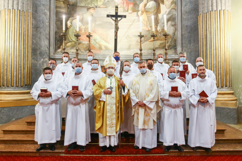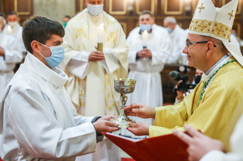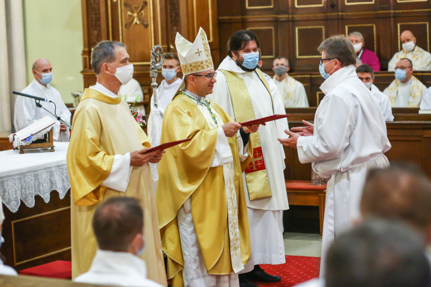„E cselekménynek, az Eucharisztiának lesztek rendkívüli szolgálói – fogalmazta meg az akolitusi szolgálat jelentőségét a püspök. – Öröm és szent megrendültség legyen bennetek a szent titok iránt, ne feledjétek, a legszentebb helyen, a szentmisén szolgáltok. Isten országának keresőiként és építőiként legyetek jelen közösségeitekben!”