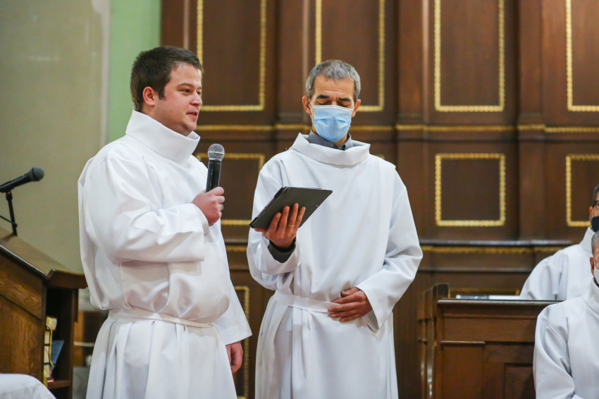 Az evangélium után először a lektori, majd az akolitusi szolgálatra jelentkezőket kérték, lépjenek elő. Miután felsorakoztak az oltár előtt, név szerint szólították őket. „Jelen” – hangzott válaszuk.