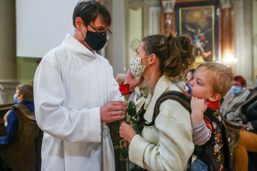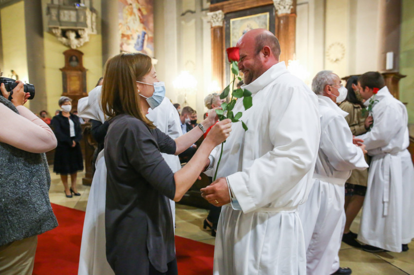 Az akolitusok feleségeit is szólították, a férjek egy-egy szál piros rózsával mondtak köszönetet támogatásukért.