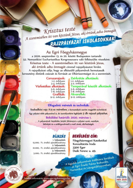 A rajzpályázat célja, hogy az elkészülő pályaművek bemutassák keresztény életünk csúcsát és forrását, az Oltáriszentséget és a szentmisét.