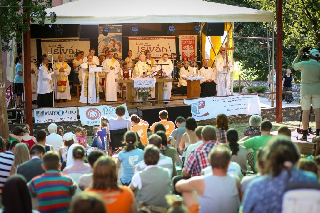 Kerényi Lajos előadása után kiscsoportos beszélgetésekkel folytatódott a találkozó, majd Ternyák Csaba egri érsek főcelebrálásával került sor a nyitó szentmisére. Örömmel indítja útjára azt a lelki kohót, amely az egerszalóki templom kertjében található – fogalmazott a főpásztor, hozzáfűzve, milyen nagy örömet jelent, hogy krisztusi korba lépett az egerszalóki találkozó.