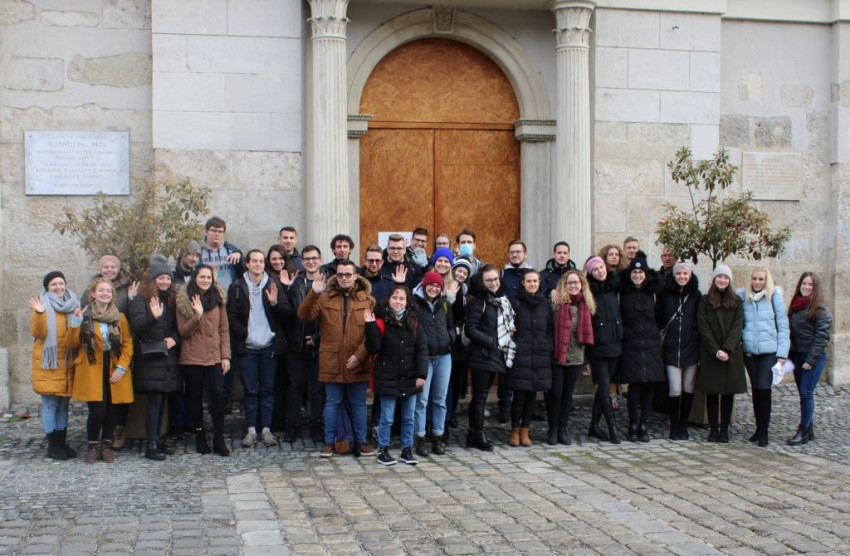 A következő napot a győri püspökség vendégeiként töltötték a szakkollégisták. Veres András főpásztor, aki egyben a II. János Pál Katolikus Szakkollégium alapító püspöke, nagy örömmel fogadta a fiatalokat. Bemutatta nekik a győri egyházmegyei központot, ahol jelenleg komoly munkálatok zajlanak, többek között valódi Collis Sacer, azaz „Szent Domb” épül.