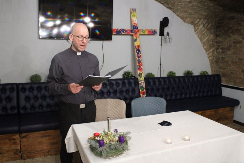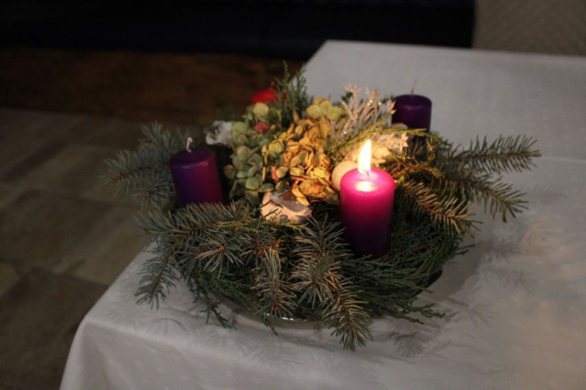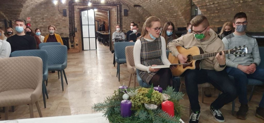 A szombathelyi hazaérkezés után a szakkollégiumban a spirituális megáldotta a az adventi koszorút, amelyen meg is gyújtotta az első gyertyát.