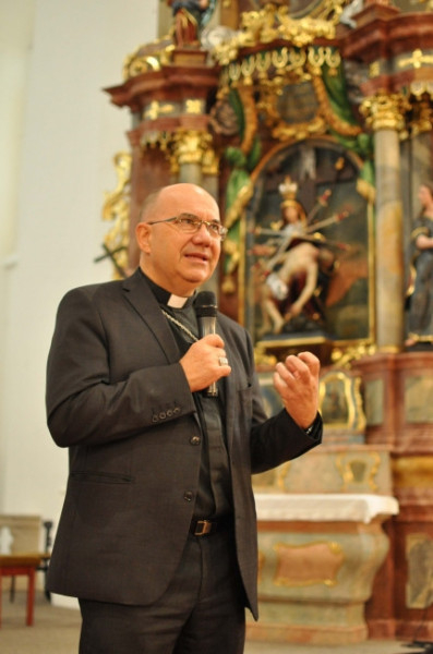 A lelki megalapozás után Marton Zsolt püspök köszöntőjében a székesegyház közelgő átadására hívta meg a jelenlévőket, illetve buzdította a hitoktatókat hivatásukban. „A világnak Krisztus kell, és ti Krisztust adjátok a világnak a rátok bízottak nevelésén, formálásán keresztül. Nem szabad elfelejteni, hogy Krisztushoz tartozunk. Ti vagytok a Jóisten kinyújtott kezei és az én közvetlen munkatársaim. Amikor beszéltek, tanítotok, az olyan, mintha a Jóisten megbízásából én tanítanék. Ti képviselitek a hivatásom, amit a Jóistentől kaptam, kaptunk együtt.”