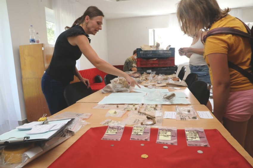Hancz Erika, a Pécsi Tudományegyetem (PTE) régészeti tanszékének munkatársa, a turbéki ásatást vezető régész az MTI-nek azt mondta, az elmúlt három hétben kerámia- és üvegtöredékeket, cipőpatkókat, késeket, lövedékeket, táskacsatot, faragott épületelemeket is találtak, a leletet ezenkívül ezüstpénzek is gazdagítják.
