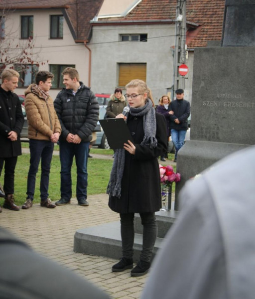 Barta Barnabás püspöki titkár beszéde után elhangzott Kozma László Szent Erzsébet legendája című verse, majd a résztvevők rózsákat helyeztek el a szobor talapzatán – kifejezve a szent iránt érzett tiszteletüket. Ének hangzott el a líceum szeretetszolgálatos diákjainak vezetésével, majd a jelenlevők közösen elimádkozták a Miatyánkot a szegényekért.