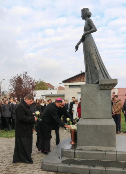 Nem volt könnyű élete Erzsébetnek, és már 24 évesen meghalt, de így is sikerült megvalósítania élete célját, és ma is tanít – mondta Schönberger Jenő szatmári megyéspüspök, amikor köszöntötte az egybegyűlteket a Hildegárda-templommal szembeni szobornál. „Mindannyian vágyunk az igazi belső békére. Szent Erzsébet azonban rájött, hogy ennek előfeltétele az Isten iránti engedelmesség. Ő egész életét Istenbe helyezte. Történhetett bármi – a férje elvesztése, hontalanság, kitaszítottság –, a lelkében mégis mindig béke maradt, mert nála Isten mindig otthon volt” – fogalmazott a főpásztor.