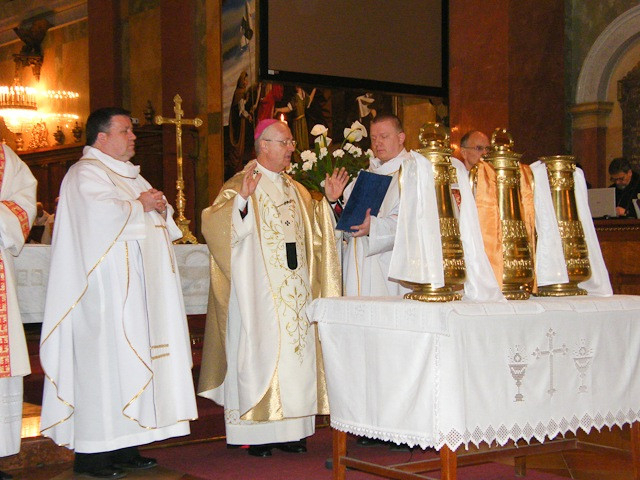 Veres András megyéspüspök Konkoly István nyugalmazott püspökkel és a Szombathelyi Egyházmegye lelkipásztoraival közösen mutatott be szentmisét nagycsütörtök délelőtt a szombathelyi székesegyházban. A főpásztor szentbeszédében a hálaadás és a bűnbánat fontosságára hívta fel a papság figyelmét, és hangsúlyozta, hogy ezek nélkül senki sem lehet alkalmas arra, hogy megfelelő pappá váljon. Krisztus szeretete arra sürgeti a lelkipásztorokat, hogy mindennap minden tőlük telhetőt megtegyenek azért, hogy Isten országa felé tereljék a híveket. A papság meghívást kapott arra, hogy Krisztus szentségeinek kiszolgáltatói legyenek, a szentségek ereje és hatékonysága azonban nem tőlük függ. Homíliájában a főpásztor azt is hangsúlyozta: a lelkipásztor feladata, hogy a hit átadása személytől személyig szóló legyen, hogy naponta felfedezzék és felfedeztessék a hívőkkel Isten szeretetét.