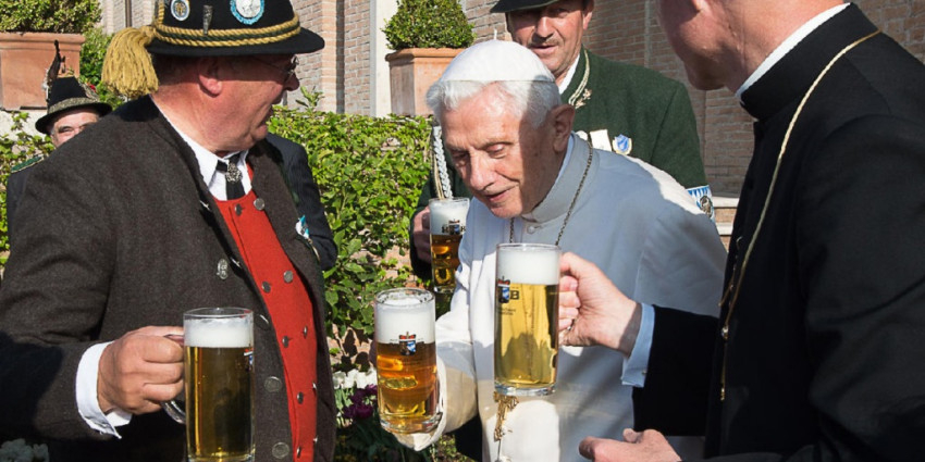 A Beer-nedict XVI Pint-ifex maximus elnevezésű ital ötlete Londonból származik: a twickenhami St Mary’s katolikus egyetem XVI. Benedekről elnevezett társadalomtudományi intézetének tanárai ezzel szerették volna megünnepelni együttműködésük kezdetének 25. évfordulóját az amerikai katolikus társadalomtudósok egyesületével (Society of Catholic Social Scientists – SCSS).