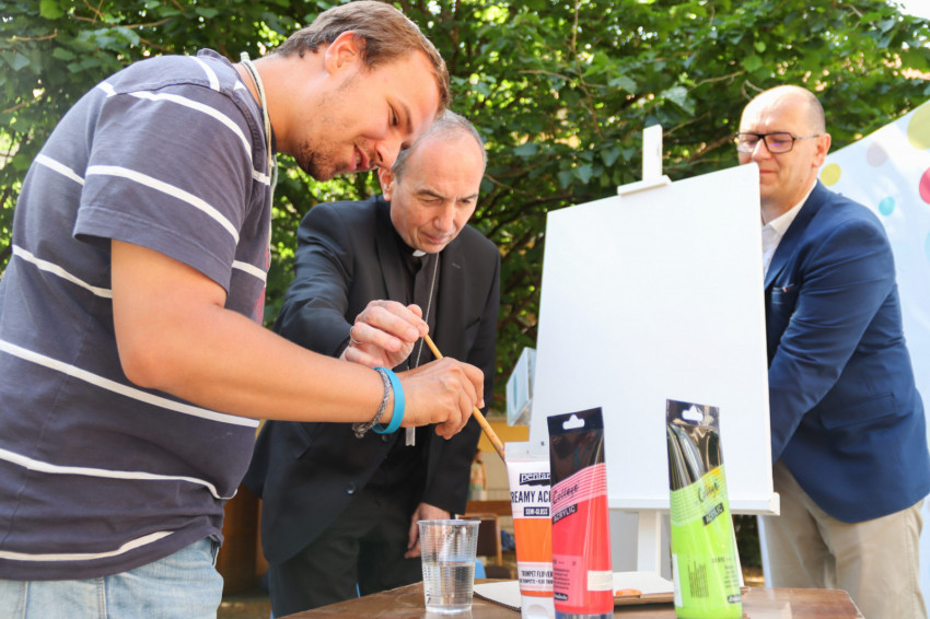 A keszthelyi alkotóműhely első ecsetvonásait az egyik értelmi fogyatékossággal élő alkotó a veszprémi érsekkel együtt tette meg. A Lámpás ’92 alapítvány képzőművészei és a Ranolder-iskola tanulói közösen alkottak a különleges alkotóműhelyben.