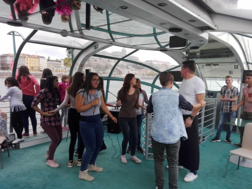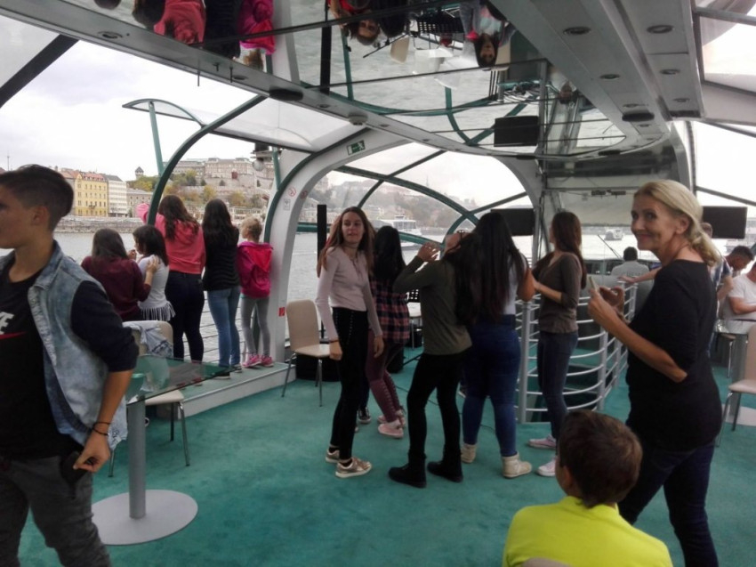 Október 29-én nagy izgalommal vártuk, hogy reggel elinduljon az autóbusz, amellyel Budapestre utaztunk. Miután megérkeztünk a fővárosba, a Margitszigeten „ütöttük el az időt”, ahol hat fős csapatokat alkotva bringóhintóztunk. Vendéglátónk két segítővel érkezett, hogy minden csapat mellett legyen felnőtt kísérő. A csapatoknak kiosztott egy-egy mappát, mely különböző kérdéseket tartalmazott. Ezekre a bringóhintózás közben, adott területen kellett megtalálnunk a helyes válaszokat. A válaszok keresése közben jókat nevettünk, egymással versenyezve, hatalmas élmény volt mindenkinek a kérdésekre adandó válaszok megfejtése, illetve a bringóhintó vezetése. Ezek után a Legenda sétahajóra szálltunk, ahol nem mindennapi élményben volt részünk: igazán különleges menüt szolgáltak nekünk fel, melyet maga a hajó tulajdonosa, Hudacsek Balázs készített! Sütőtökkrémlevest ettünk pirított fenyőmaggal, majd sült kacsamellet rizzsel, gyümölcsszósszal. A desszert nagyon lágy, fenséges csokiszelet volt, eperszósszal, karamell csíkkal. A gyerekek többségének szokatlan ízek voltak ezek, hiszen nem minden nap ehetnek ilyen ínyencségeket.
