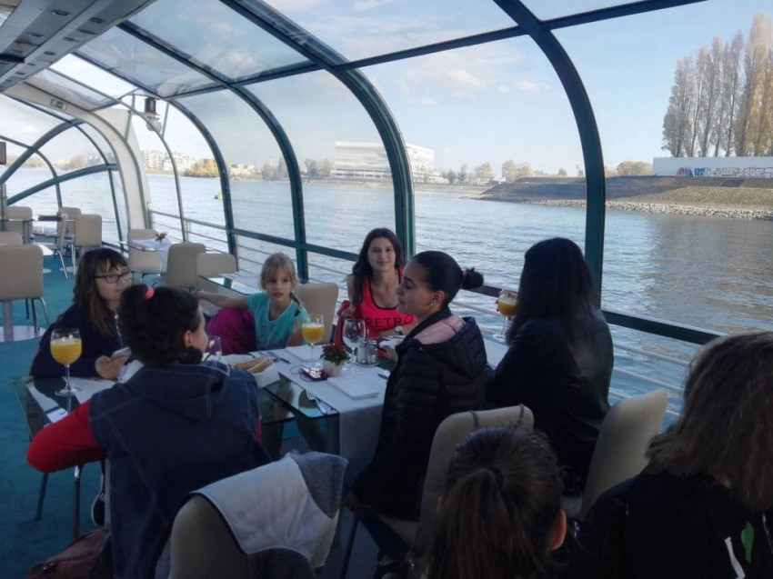 Az ebédet igen impozáns környezetben fogyasztottuk el a hajón, miközben a Duna habjait szeltük és Budapestben gyönyörködtünk. A feladatok megoldását Hudacsek Balázs értékelte: a győztes ugyan a Hegyes Tibor Pálné szakmai vezető által vezetett csapat lett, de ezen a napon minden résztvevő nyertes volt. Igazán jó hangulatban telt a hajókázás, még táncoltunk is. A vendéglátást megköszönve, felejthetetlen élményekkel gazdagodva, délután indultunk vissza az autóbusszal.