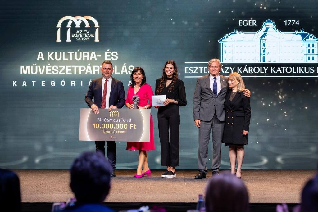 Az Év Egyeteme 2025 címet Kultúra- és művészetpártolás kategóriában az Eszterházy Károly Katolikus Egyetem (EKKE) nyerte el, a díjat Kovács Kati Kossuth-, Prima, és Liszt Ferenc-díjas énekes, előadóművész, valamint Rátóti Zoltán Kossuth- és Jászai Mari-díjas színész, rendező, a Magyar Művészeti Akadémia alelnöke adta át az intézményt képviselőknek.