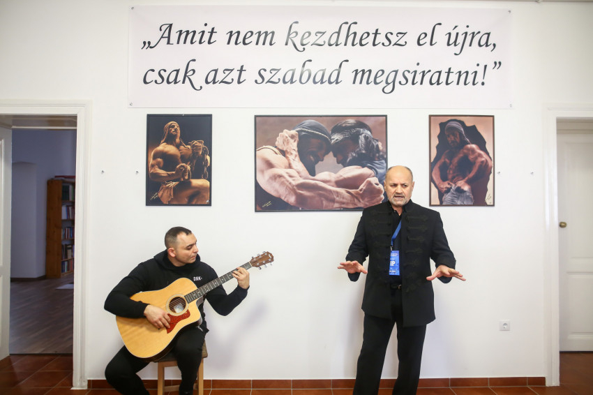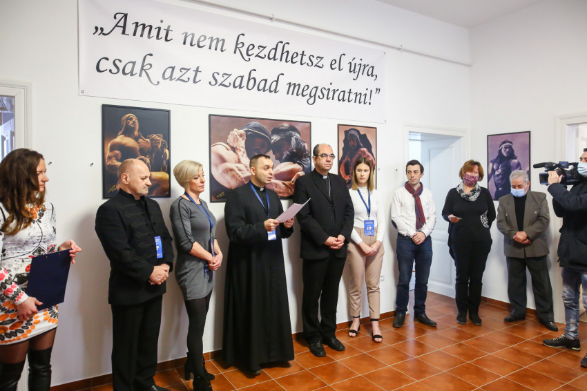 Nem szokványos látvány fogadta az alsósági Szent Miklós-plébánián az „Ép testben ép lélek” sajtótájékoztatóra érkezőket. A bejárati terem falait testépítő sportolók nagyalakos képei díszítették, a belső terem falain pedig Lakatos Mihály testépítő bajnok bibliaillusztrációi voltak láthatók.