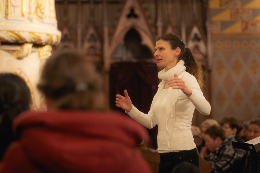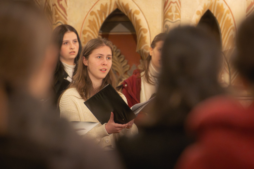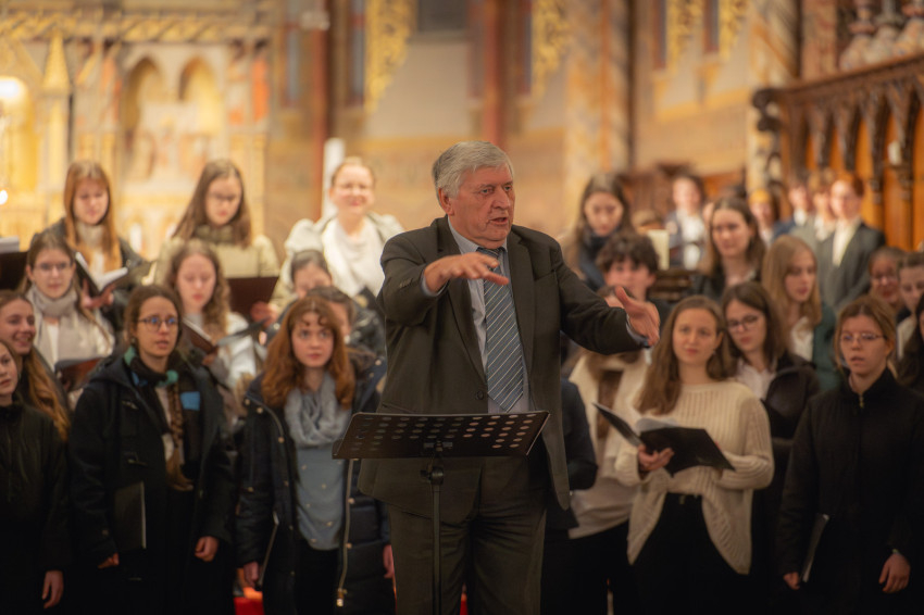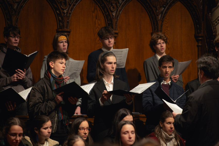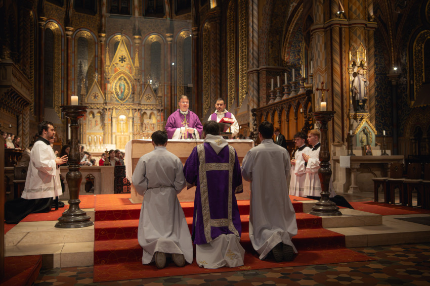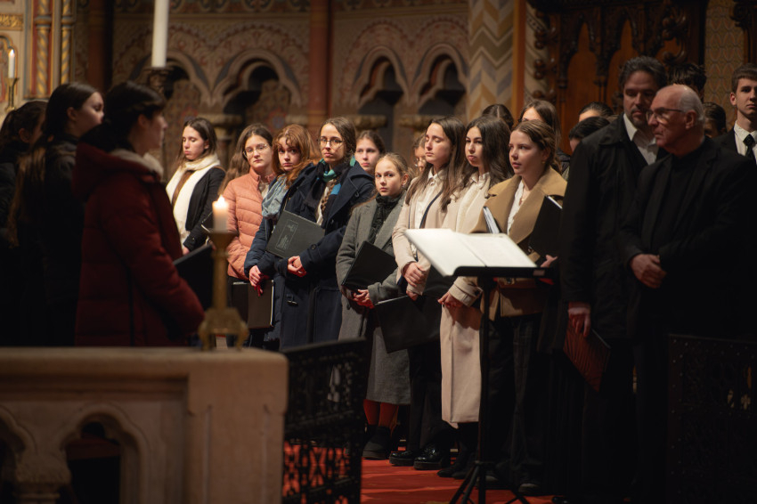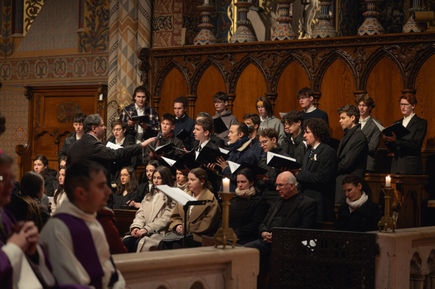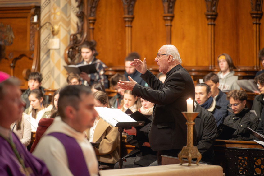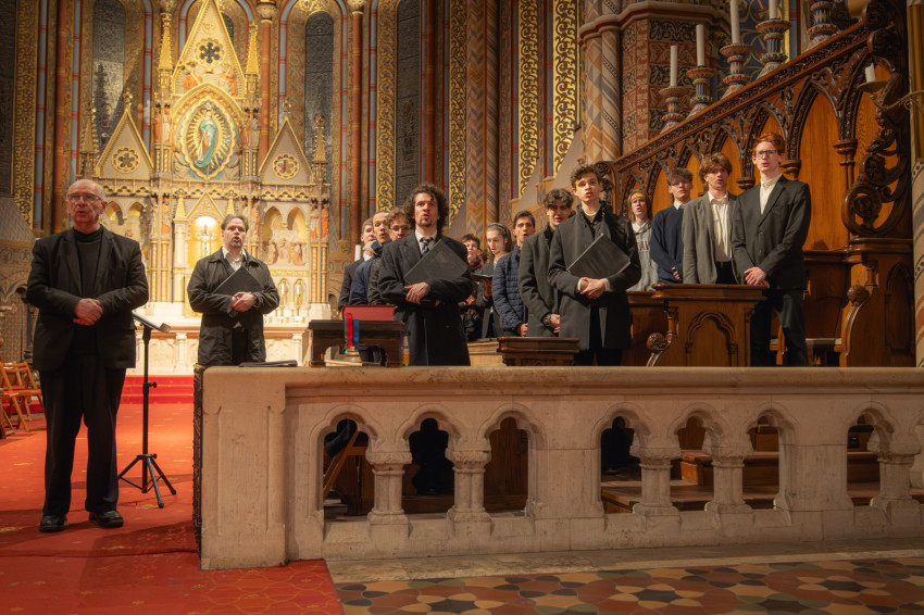 A szentmisét rövid zenei áhítat követte, amelyen Sapszon Borbála vezényletével elhangzott Kodály Zoltán Könyörgés, Ave Maria és 150. Genfi zsoltár c. műve, majd Katona Tibor vezényelte a Magyar miséből a Glória tételt, mely nagyböjtben hagyományosan kimarad a liturgiából.