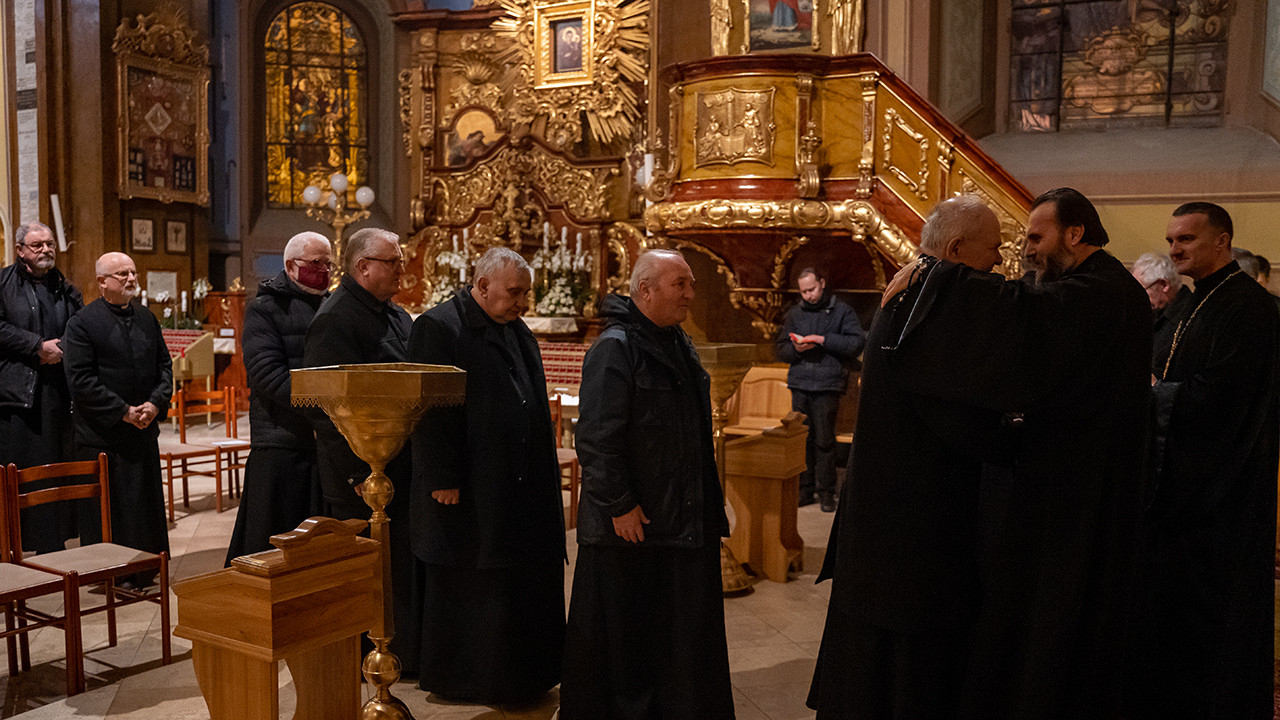 A paptestvérek egymástól is bocsántot kértek, fekete reverendás kört alkotva a kegytempom főhajójában.