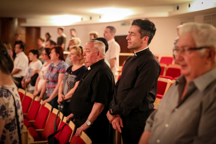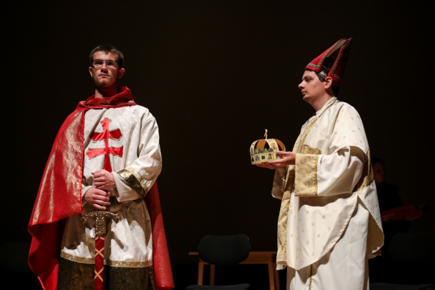 A társulat tagjai a konferencia résztvevőit megénekeltetve zárták előadásukat. A Richter János Hangverseny- és Konferenciateremben elhangzott a Szent László király, Istennek szolgája… kezdetű ének és ősi himnuszunk, a Boldogasszony Anyánk.