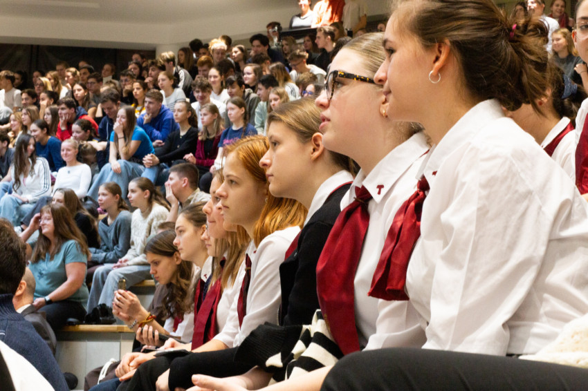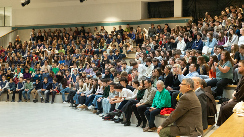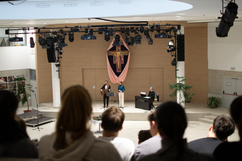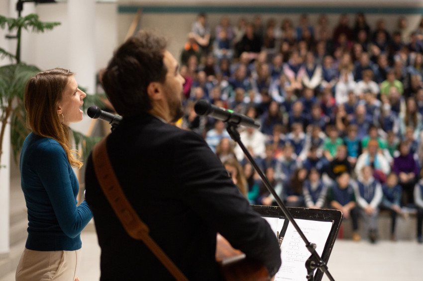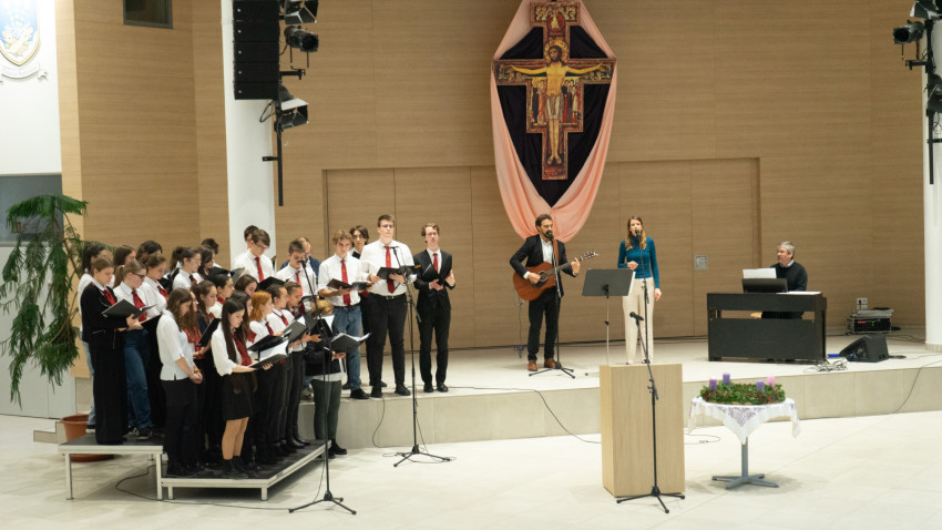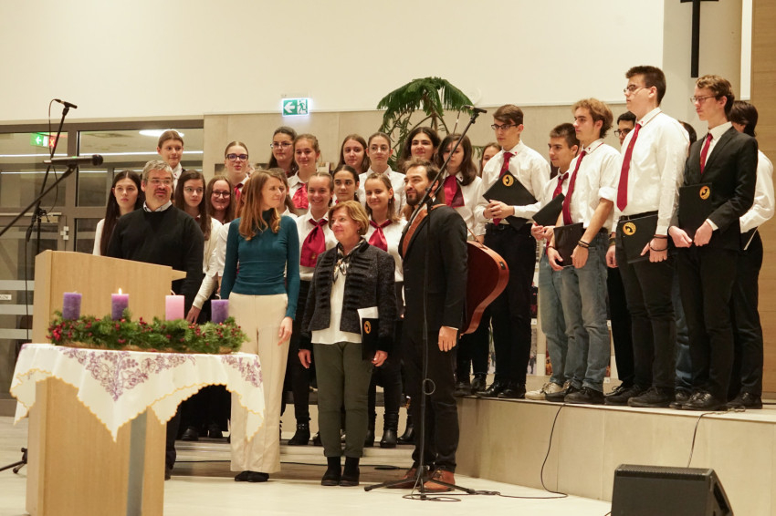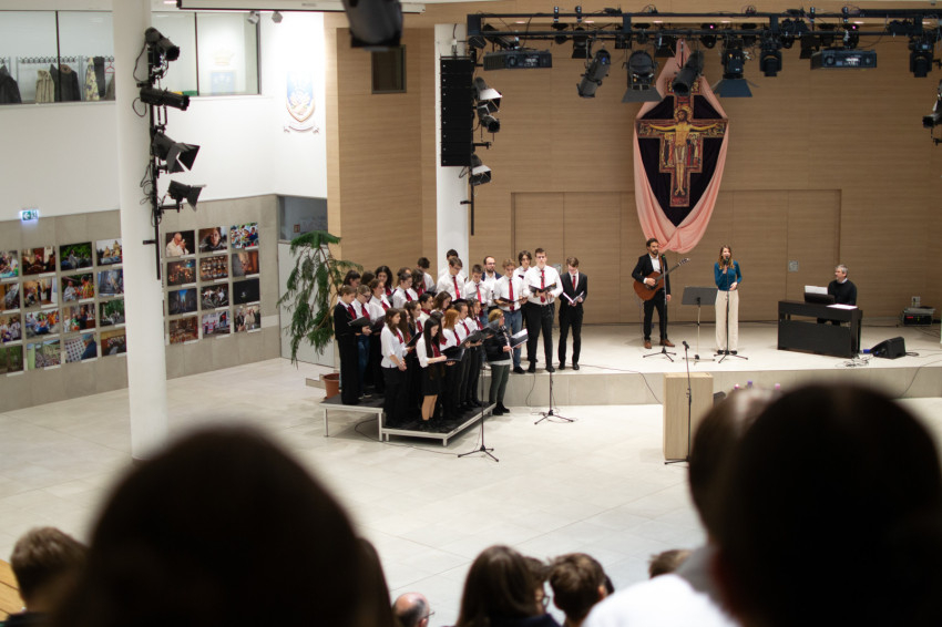 December 3-án délelőtt 10 órakor megtelt a II. kerületi Szent Angéla-iskola új aulája felsős és gimnazista diákokkal, érdeklődőkkel fotósaink, Merényi Zita és Lambert Attila kiállításának megnyitóján. A Magnificat zenekar, azaz Dolhai Attila színművész, Varga Mónika és Lambert Attila előadásában dicsőítő énekek mellett felcsendült Leonard Cohen Allelujája is, melynek refrénjét közösen énekelték a diákok, tanárok és vendégek. Az ünnepélyes megnyitóbeszédek után a Szent Angéla Gimnázium énekkarával együtt lépett fel a Magnificat zenekar, Szentlélek-hívó éneklésükbe a résztvevőket is bevonták.
