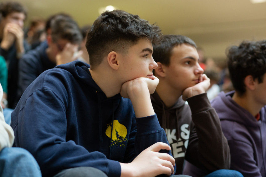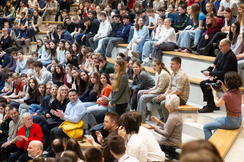 Egy rövid kis történettel szemléltette, mit tanulhatunk meg tőlük. „Amikor egy kiváló fotográfus Olaszországban járt, az Etna éppen elkezdett füstölögni, így engedélyt kért a hatóságoktól, hogy kisrepülővel a magasból képet készíthessen róla. A kisrepülő felszáll, kérdezi a pilóta: »Hová megyünk?« »Az Etna fölé« – hangzik a válasz. »De miért?« »Mert fotós vagyok, szeretnék egy jó fényképet készíteni róla.« Kínos csend után megszólal a pilóta: »Azt hittem, ön a repülőoktató.«” Repülni nem tanulunk meg a fotósoktól, átvitt értelemben mégis megtanulhatunk – magyarázta a főszerkesztő –, hiszen elsajátíthatunk egy olyan szemléletet, amely megragadja a pillanatokat. „A közösségi oldalakon látszik, hogy ti is óhatatlanul megpróbáljátok ezeket ellesni, és ezeket nemcsak magatoknak szeretnétek megmutatni, hanem egymásnak is” – szólt a diákokhoz.