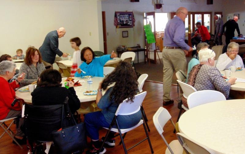 A mise után a havonta szokásos közös reggelire invitálták a közösség tagjait, ahol büfé rendszerben, a hívők által hozott finomságokból villásreggeliztünk. Közben természetesen többekkel, érdeklődőkkel beszélgettem.