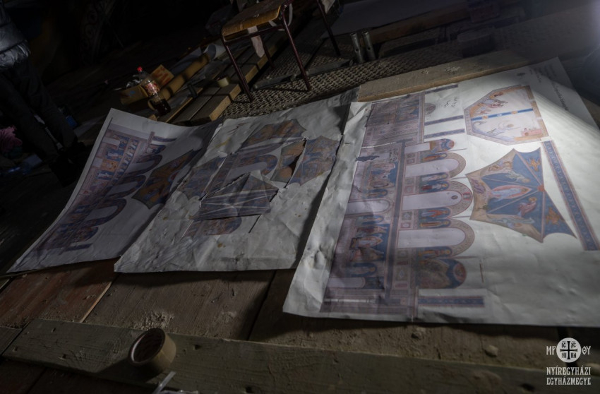 A látogatás során a többfős templomfestő csapatot irányító Seres Tamás festő-restaurátor művész röviden beszámolt a vendégeknek a festés fázisairól a tervezéstől a kivitelezésig, az anyaghasználatról, az alkalmazott technikáról, a színekről és az ikonográfiai programról, mely által a templom falfestményei a liturgia szereplőivé válnak.