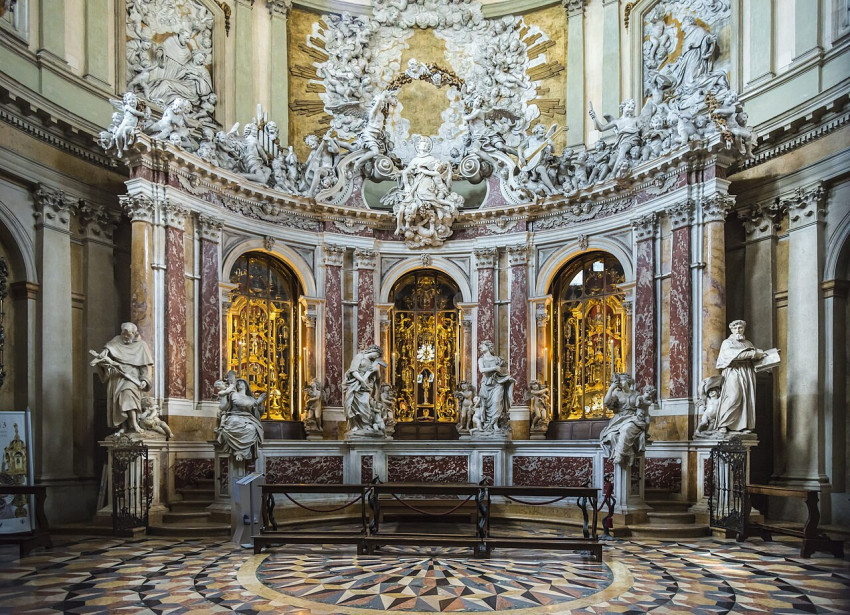 A kápolna középpontjában látható balusztrád felett hat márványszobor tűnik fel. Legfelül angyalok kaptak helyet, akik Szent Antal megdicsőült alakját veszik körül. A bazilika egész Európában egyedülálló abban a tekintetben is, hogy számos ereklyét őriz. Szent Antal nyelv- és állkapocsereklyéjét, illetve bal alsókarjának egy darabja is itt található, más relikviák mellett. A hatalmas, arannyal gazdagon díszített, üvegezett tárolók előtt a hívek egyesével haladnak el, többen keresztet vetve lépnek le az ereklyékhez vezető szűk lépcsőkről. Észre sem vettük, hogy amíg a kápolnában álltunk, az egész templom megtelt látogatókkal.
