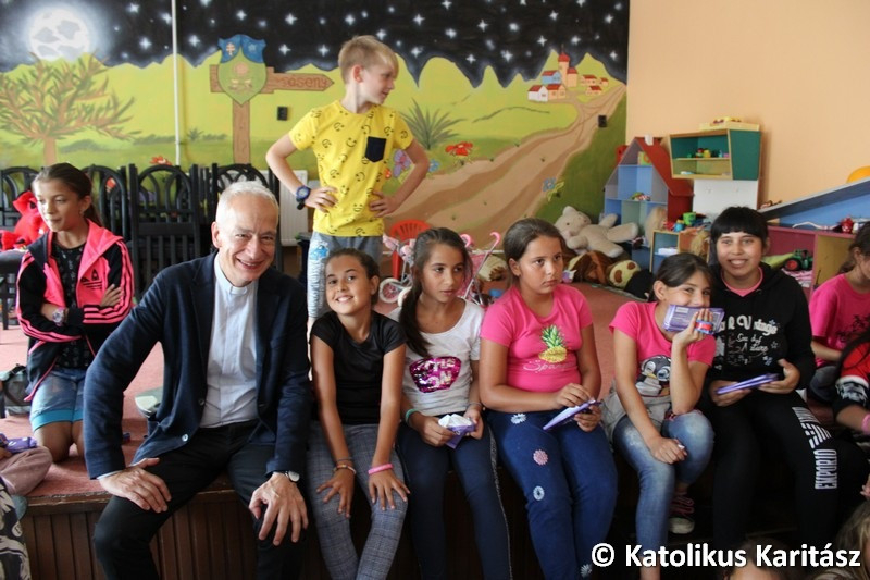 A szervezet európai elnöke bepillantást nyert a Katolikus Karitász által az ormánsági Sellyei járás területén végzett felzárkóztató programokba is Tésenyben, a Jelenlét Ponton. Látogatásakor éppen egy húszfős gyermekprogram zajlott, melynek keretében forgószínpados játszóházban ismerkedtek meg a teremtett világ értékeivel és az újrahasznosítás lehetőségeivel. A gyerekek a játszóház után spontán énekléssel köszöntötték Landau atyát; és ezzel felvillantottak valamit abból az örömteli közösségi életből, amelyet a karitász Jelenlét Pontjain tapasztalnak nap mint nap.