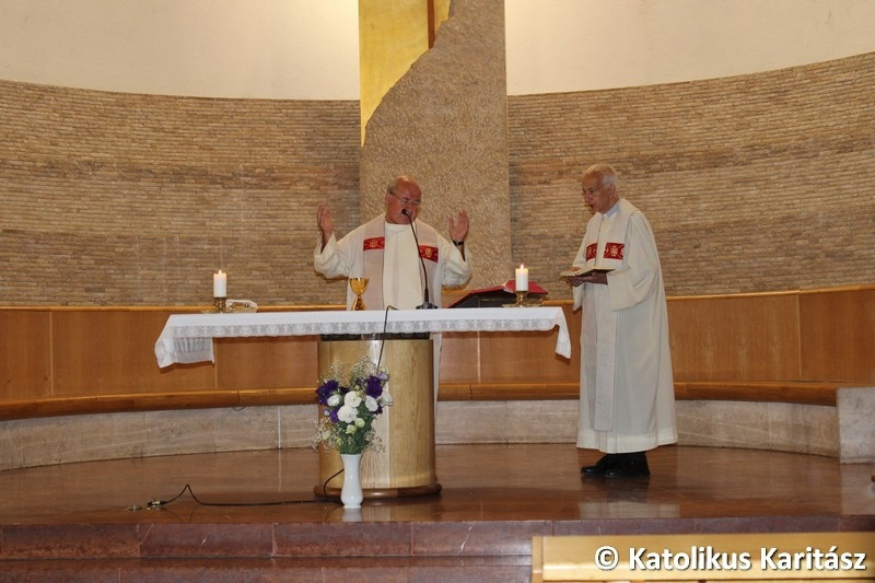 A látogatás szentmisével kezdődött Budapesten, amit a Magyar Szentek templomában Écsy Gábor atyával, a Katolikus Karitász igazgatójával együtt mutatott be a szervezet munkatársainak részvételével.