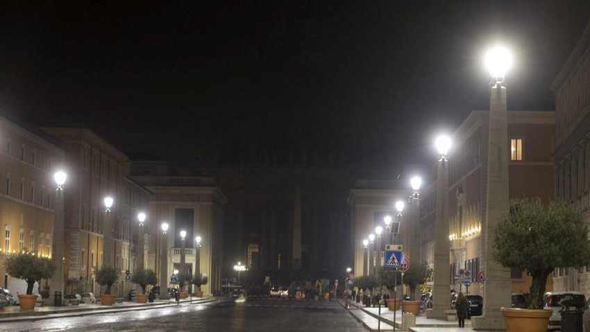 Rómában azonban rögtön felfigyeltek a Szent Péter téri készülődésre, miután december 2-án, szerdán este a Szent Péter-bazilika kupolájának világítását hirtelen lekapcsolták, és ezzel sötétség borult a tér jó részére.
