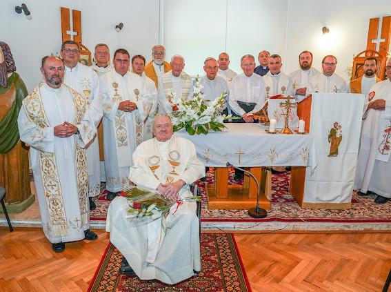 A pap feladata jó pásztorként ott állni, ahová Krisztus állította a püspök által. Aranymisés paptestvérünk ezt tette, és most örömmel ad hálát. Volt ebben az ötven évben sok öröm, lelki öröm, Isten gondoskodásának a megtapasztalása. De volt más felövezés is: aranymisés paptestvérünk életében is jelen volt a szenvedés vállalása, a betegség kötöttsége – hangzott el a prédikációban.