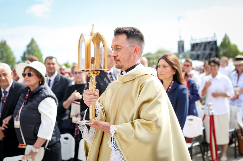 Babos Áron, az Esztergom-Budapesti Főegyházmegye ifjúsági referense egy kerekesszékes férfival, Fáy Istvánnal várakozik, aki nagyon szeretné megérinteni Magdi ereklyéjét, de ez egyelőre reménytelennek tűnik, hiszen nem tud felmenni a színpadra, ahol zarándokok százai hódolatukat fejezik ki. Budapest 6. kerületének Szent Család-plébániájáról érkeztek. István úgy érzi, meg kell köszönnie a plébániának, hogy őt is elhozták, felvállalták őt. „Sajnálom, hogy nem foghatom meg az ereklyét, de hát még nem vagyok angyal, nem tudok odamenni… És a vonat is nemsokára indul” – elérzékenyülve, de humorát félre nem téve mondja mindezt, nehezen formálva a szavakat.