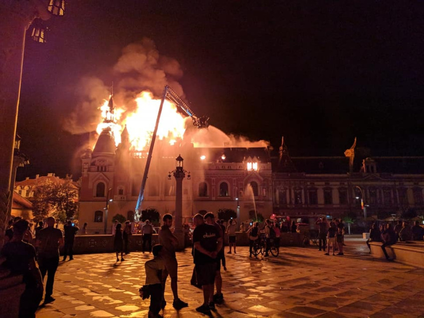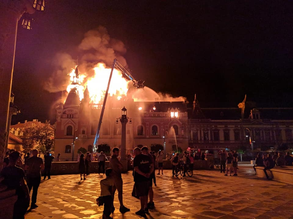 A bihon.ro Bihar megyei hírportál tájékoztatása szerint 21 óra 50 perckor riasztották a megyei Sürgősségi Esetek Felügyeletét (ISU) azzal, hogy lángra kapott a Szent László tér egyik emblematikus műemléképülete. A lángok a tetőszerkezet egészére, illetve az első emelet egy részére terjedtek ki, mintegy 1300 négyzetméteren pusztítottak. A palota egyik, Pável utca felőli tornya le is omlott a tűz miatt. A tűzoltóknak éjjel egy órára sikerült eloltaniuk a lángokat. A Bihar megyei ISU szóvivője, Camelia Roşca úgy nyilatkozott az Agerpres hírügynökségnek, hogy mintegy száz tűzoltó vett részt a lángok megfékezésében. Nehezítette az oltást, hogy csupán egy vízcsap volt a környékén.