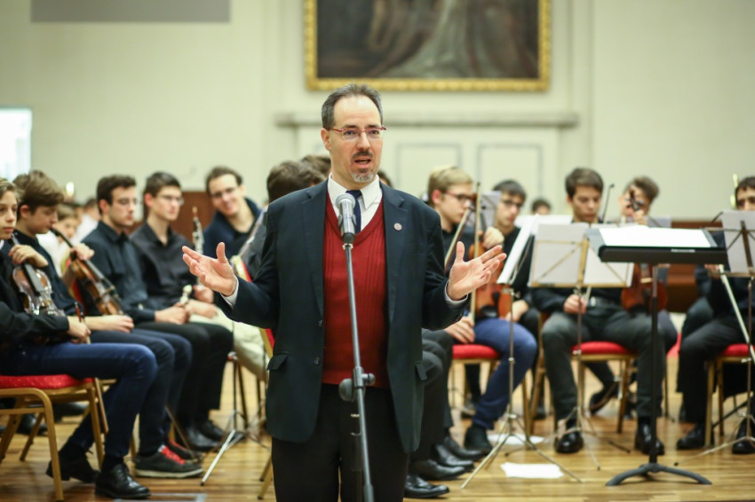 Az ünneplő közösségnek Medgyesy S. Norbert, a Pázmány Páter Katolikus Egyetem Bölcsészettudományi Karának docense, az MTA BTK Régi Magyar Dráma Kutatócsoport tagja, a piliscsabai Boldog Özséb Színtársulat vezetője mutatta be az iskoladrámák hagyományát. Elmondta, hogy a váradi betlehemes a legősibb magyar nyelven fennmaradt karácsonyi játékunk. A színdarab a görög-római és keresztény klasszicitáson alapuló, értékelvű európai iskolakultúra tükre, beilleszthető a reneszánsz és barokk kori hazai iskoladráma-repertoárba. A török uralom következtében három részre szakadt országban az 1560-as évek és 1792 között a színházat a középiskola jelentette. Több mint tízezer hazai drámaelőadásról tudunk ebből az időszakból. Akkoriban ezek a zenével és tánccal színesített, hang- és fényeffektusokat alkalmazó, igencsak színes előadások nemcsak gyönyörködtettek, és nemcsak katarzist okoztak a nézőben, hanem elsősorban tanítottak, szemléltettek: a színpadi előadás volt 1735-ig maga a történelem-, a nyelvtan- és a vallásoktatás, s ezzel legmodernebb oktatási és egyben nevelési eszközt alkalmazták. A piarista iskolában a színjátszásnak alapításától fogva nagy szerepe volt. Kilián István színház- és drámatörténész, akinek a váradi betlehemes felfedezése is köszönhető, 260 piarista iskolai drámaelőadásról tud az 1668 és 1799 közötti időszakból.