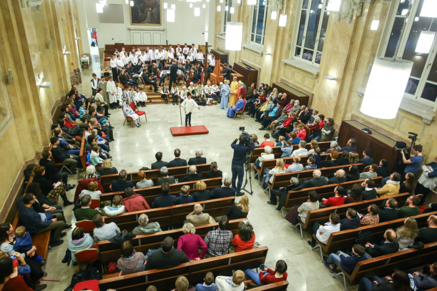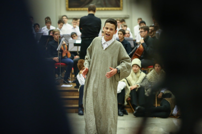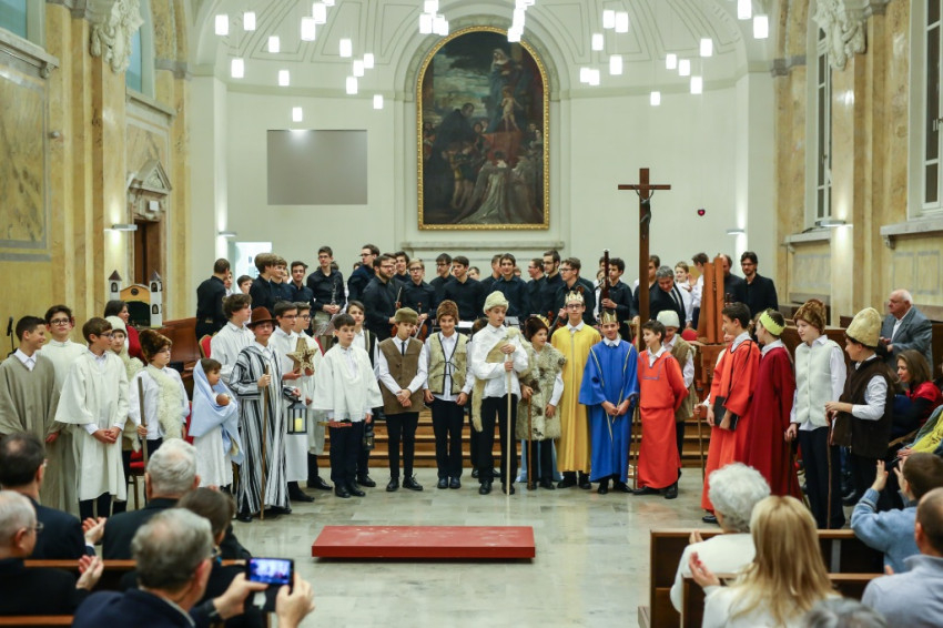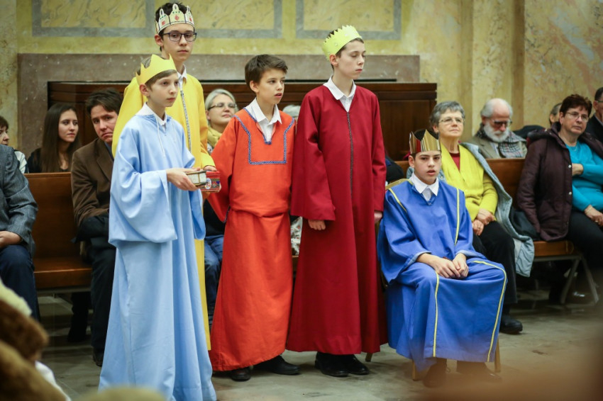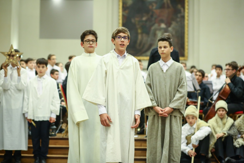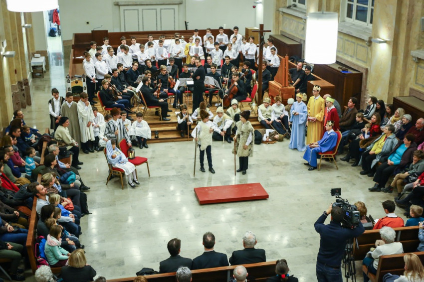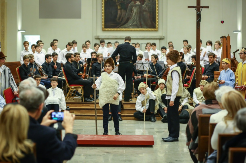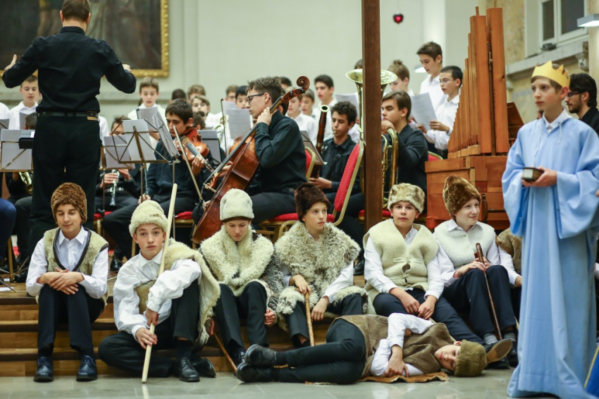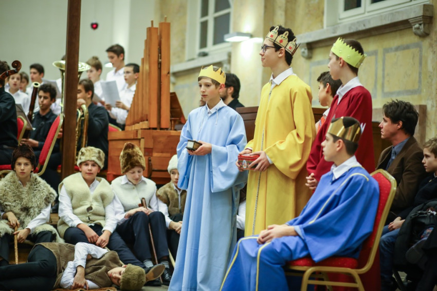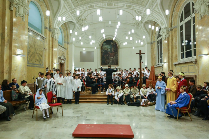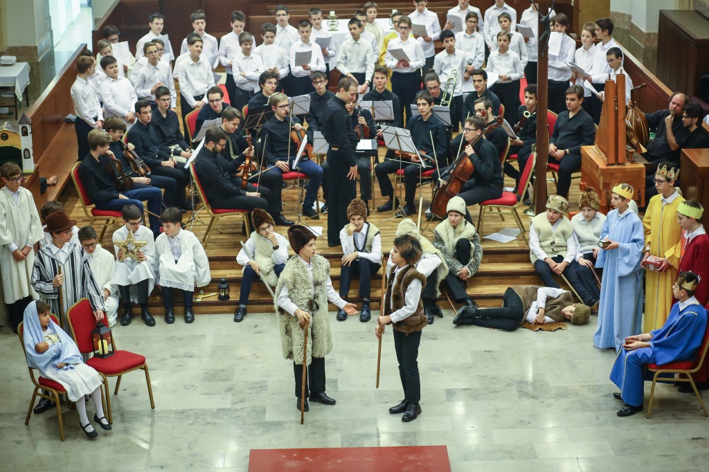 Színielőadás színhelyévé változott az év utolsó tanítási napján a Budapesti Piarista Gimnázium kápolnája. A padokból u-alakot formáltak, a zene- és énekkart a szentélyben helyezték el. Megtelt nézőtér várta az előadókat, akik ezúttal is a gimnáziumot kezdő hetedikesek voltak, Valacka András osztálya, kiegészülve az iskola ének- és zenekarával. Nagy fába vágták fejszéjüket – ősi karácsonyi játék, az 1629-ből fennmaradt váradi betlehemes elevenedett meg előadásukban.