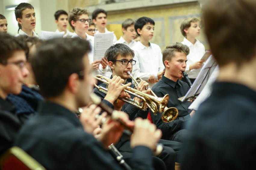 Az előadásban kiemelt szerepet kapott az ének és zene. A gimnázium ének és zenekara szólaltatta meg a Kobzos Kiss Tamás zenetörténész, ének- és lantművész szerkesztette, korabeli forrásokból – így az Eperjesi graduálból, váradi énekeskönyvből, illetve a Cantus Catholiciből – vett dallamokat. Így lett a művészet a mély teológiai tartalom kifejezésének közvetítőjévé, és kaphattunk mély, meghitt karácsonyi ünnepet.