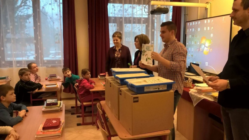 Kopasz Anikó a Lego Education képviseletében egy teljes osztály számára oktatási célra felhasználható Lego-készletet hozott, amiket az 1. c osztály tanulói vehettek birtokba Hauzmanné Czipa Márta osztályfőnök irányításával.