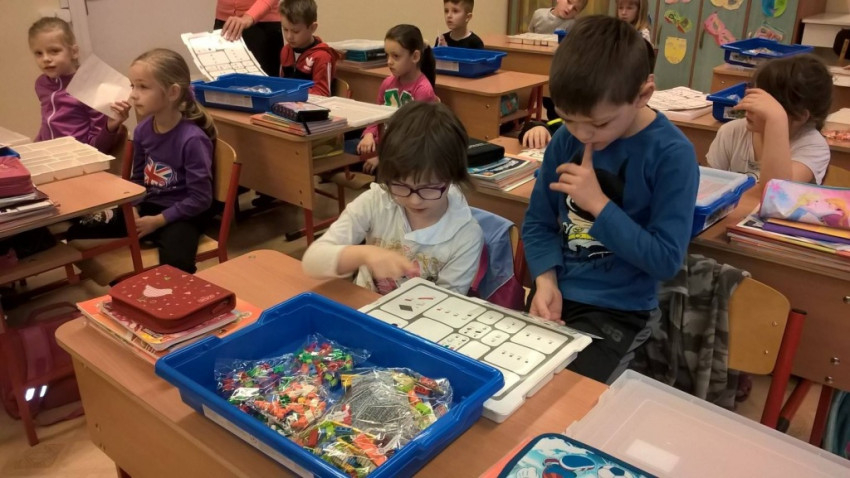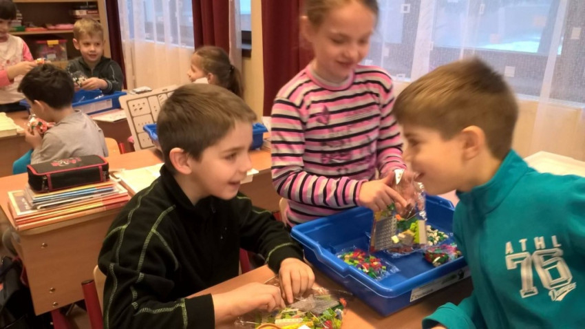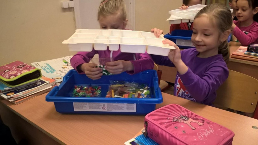 A gyerekek lelkesen ismerkedtek a dobozok tartalmával, és nagy örömmel hallották, hogy a továbbiakban rendszeresen fognak tevékenykedni az apró figurákkal és kockákkal matematikaórán.
