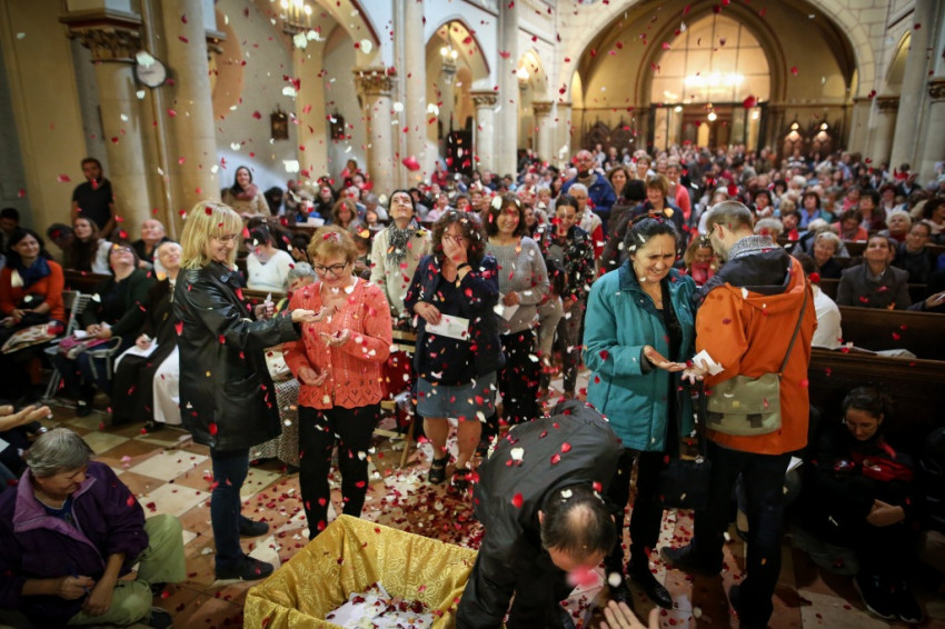 A tanítás után szentségimádás következett, melynek során Kis Szent Teréz írásaiból olvastak fel részleteket a közösség tagjai, ezt szentségi áldás és a rózsaszirmok hullatása követte.