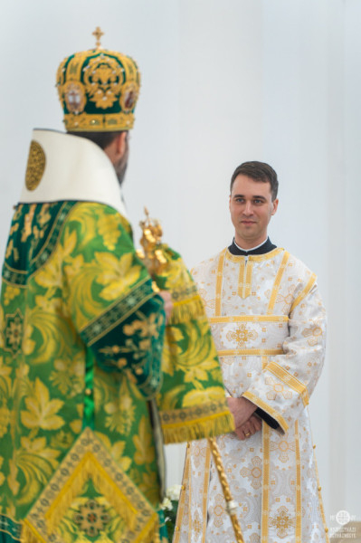 A Szent Liturgián az újszentelt immár diakónusként szolgált tovább.