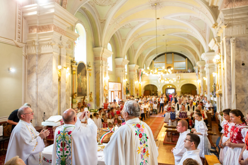 „Elfogult örömmel vagyok itt. Személyes kötődésem is fűz ide, ezzel az örömmel és szeretettel mutatom be a szentmisét” – köszöntötte Marton Zsolt az egybegyűlteket.