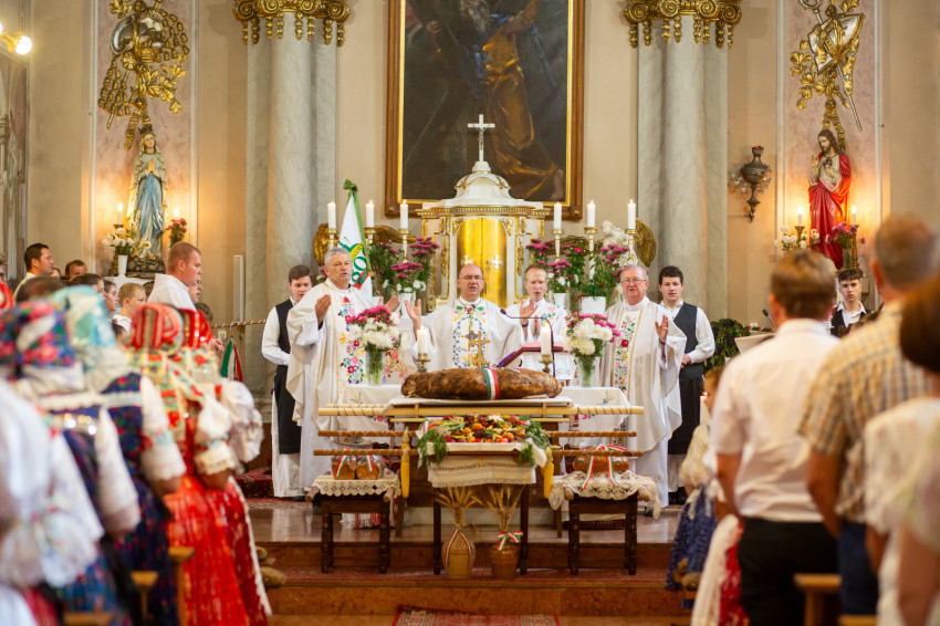 A terményáldó körmenetet 30 éve újította fel a helyi Kalász csoport, azóta augusztus utolsó vasárnapján imával és énekkel járják be a község fő utcáját. „Amit tavasszal, a búzaszenteléskor kérünk, azért ilyenkor adunk hálát. Mindenünk megvan, hogy az emberek jól tudjanak élni, nem feledkezünk meg a hálaadásról. Mennyi érték van e 800 évben, mennyi ember küzdelme, áldozata!” – fogalmazott Máthé György plébános.