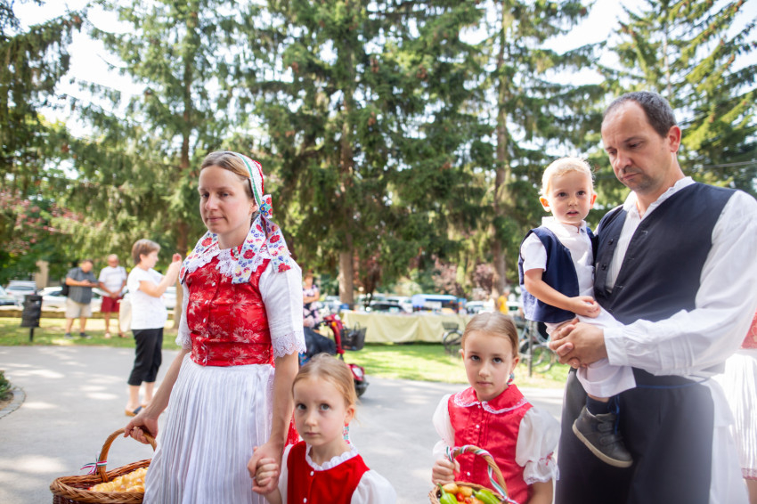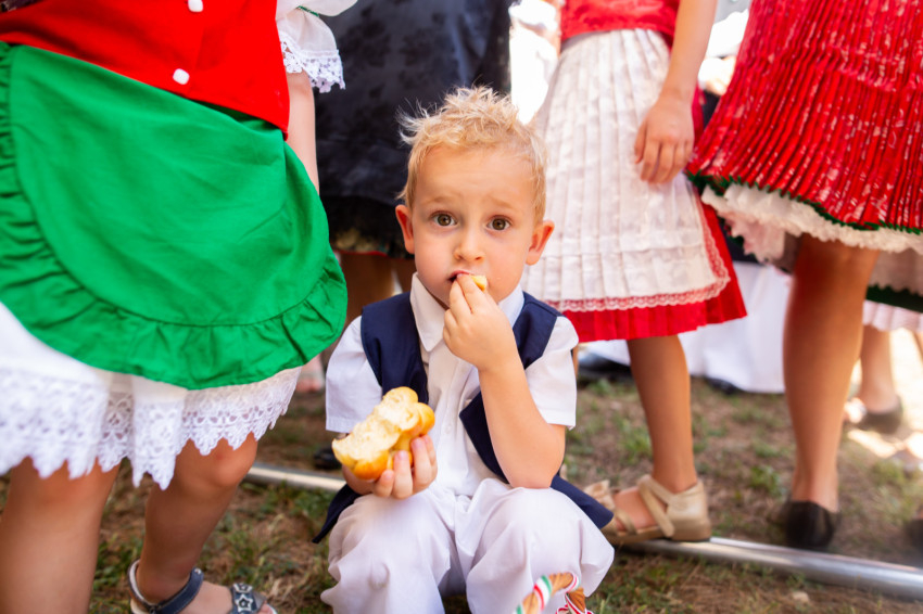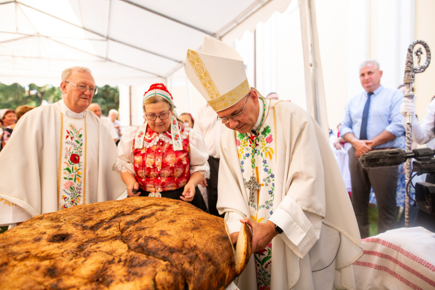 Végül a templom előtt Marton Zsolt megszegte a kenyeret és megnyitotta hordó csapját. A hívek együtt fogyasztották el a megáldott kenyeret.