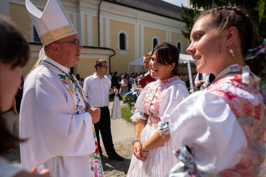 Hosszú sorban vonult be az asszisztencia. Viseltbe öltözött fiatalemberek, ministránsok, Máthé György plébános és Kovács József kisegítő lelkész, Marton Zsolt váci megyéspüspök, a szentmise főcelebránsa és szónoka.