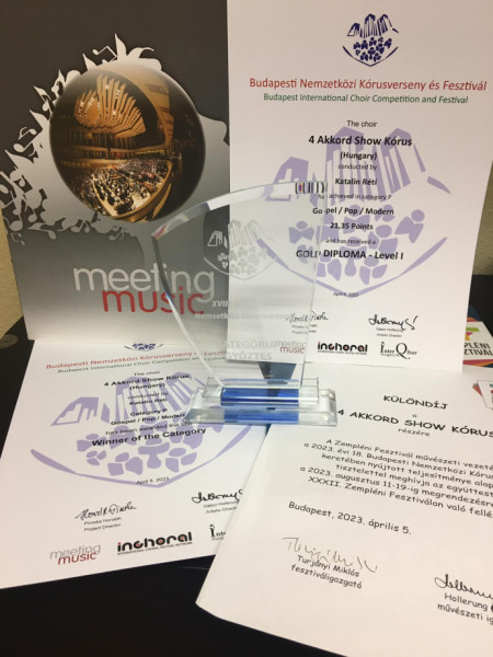 Kiemelt eseményei voltak a 4 Akkord Show Kórus történetének, hogy nemzetközi kórusversenyekre neveztünk, amelyek során négy aranydiplomát nyertünk már, és nagydíjas kórusként is felléphettünk elismert nemzetközi szakmai zsűri előtt, miközben olyan kórusokkal mérettük meg magunkat, amelyek valóban a professzionális kóruséneklés világából érkeztek. Ezek a kihívások, feladatok mindig erősebbé tettek bennünket, és a közös siker mögött nagyon sok egyéni fejlődés áll. Van például olyan kórustag, aki úgy csatlakozott, hogy nem tudott kottát olvasni. Nálunk így is lehetőséget kapott; használja a kottát, egyre többet ért belőle, és végül szépen lassan kottaolvasóvá válik.
