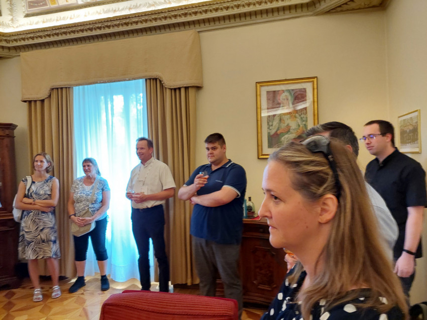 A magyar küldöttség csütörtökön ebédidőben felkereste a Pápai Magyar Intézetet, ahol Németh Norbert rektor vendégszeretetét élvezhették.