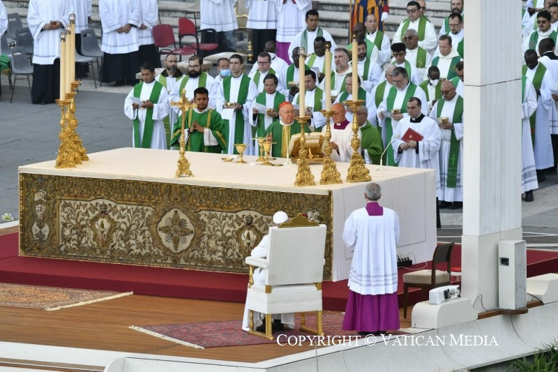 „Ti, házastársak, amikor Krisztus kegyelméből családot alapítottatok, mindannyian meghoztátok ezt a bátor döntést: nem a magatok érdekében használjátok a szabadságot, hanem arra, hogy szeressétek azokat az embereket, akiket Isten mellétek helyezett – mondta el a Szentatya más gondolatok mellettt homíliájában. – Ahelyett, hogy »szigetként« éltetek volna, »egymás szolgálatába« álltatok. Így kell megélni a szabadságot a családban! Nincsenek »bolygók« vagy »műholdak«, amelyek mindegyike a saját pályáján halad. A család a találkozás, a megosztás, a magunkból való kilépés helye, hogy befogadjuk a másikat és közel legyünk hozzá. Ez az első hely, ahol az ember megtanul szeretni. Ezt sose felejtsétek el: a család az első hely, ahol az ember megtanul szeretni.”