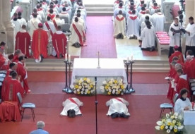 Az ünnepélyes ígérettétel után, a Mindenszentek litániája alatt a szentelendők leborulva, a hívek térdelve imádkoztak.